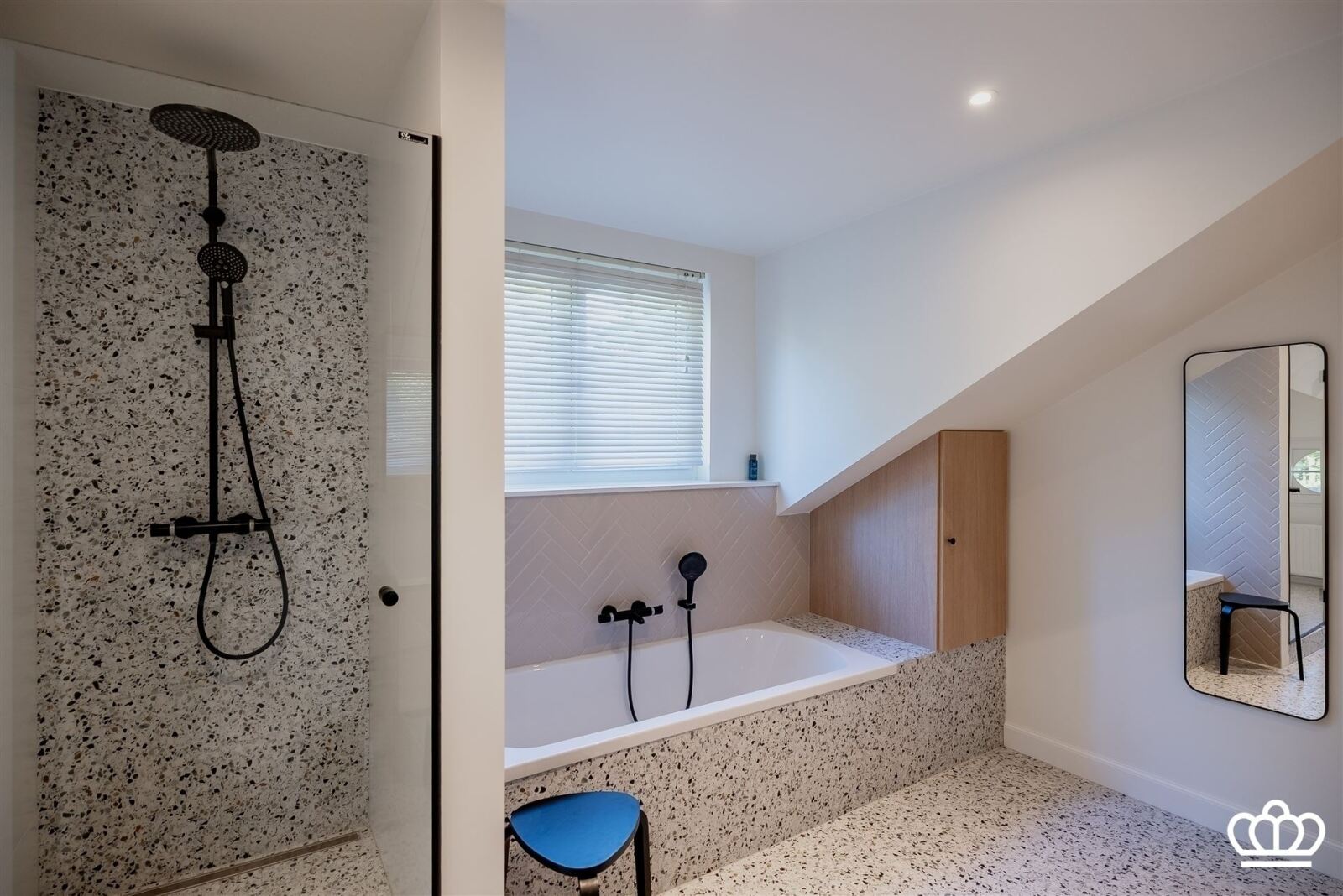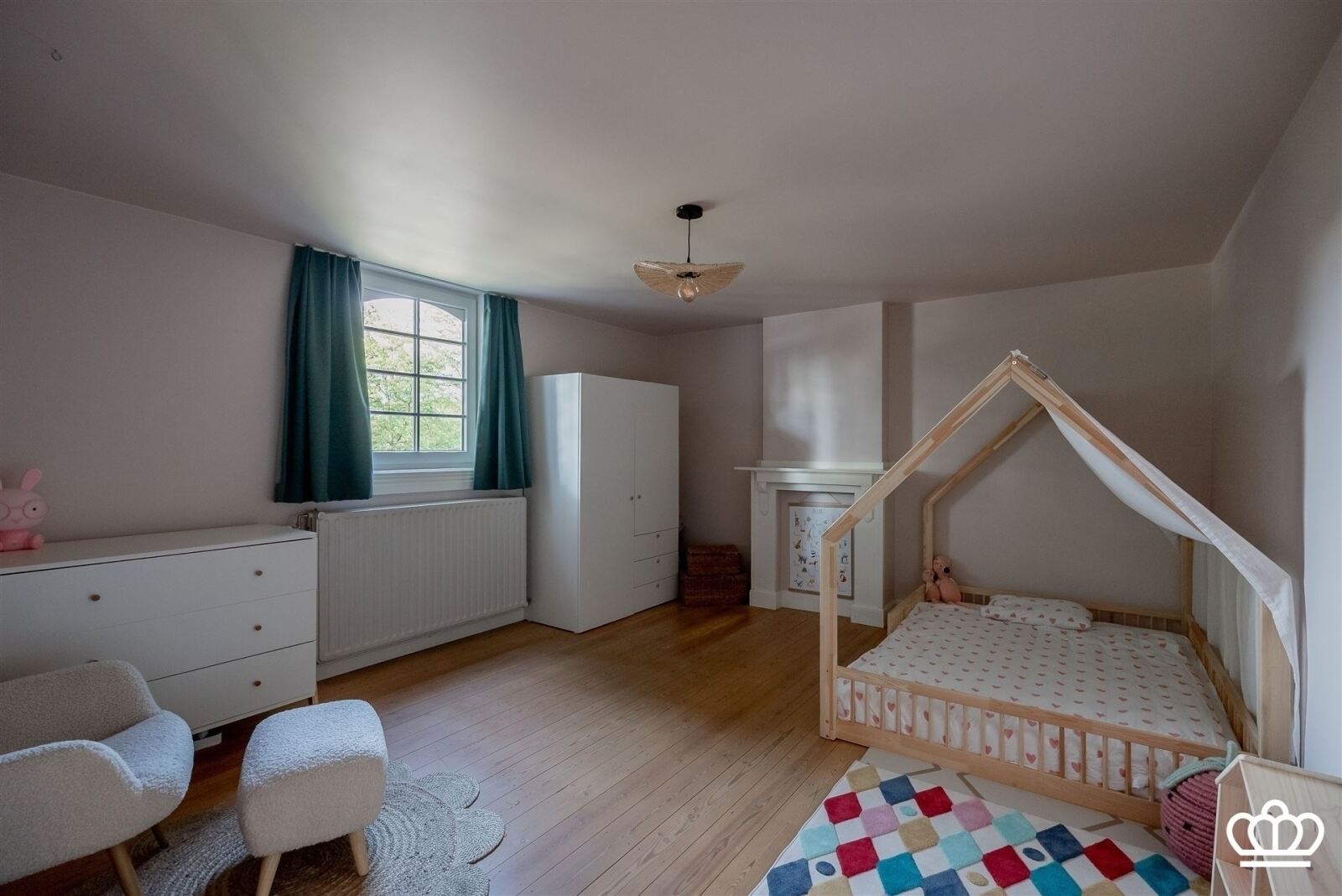 De nachthal op de eerste verdieping geeft uit op de masterbedroom met aansluitend een dressing voorzien van ingemaakte kasten, deze staat in verbinding staat met de recent vernieuwde badkamer met ligbad, douche, lavabo meubel en toilet. Verder op deze verdieping nog een grote slaapkamer en een kleinere kamer die momenteel is ingericht als bureau. Over de gehele verdieping ligt een karaktervolle houten vloer.