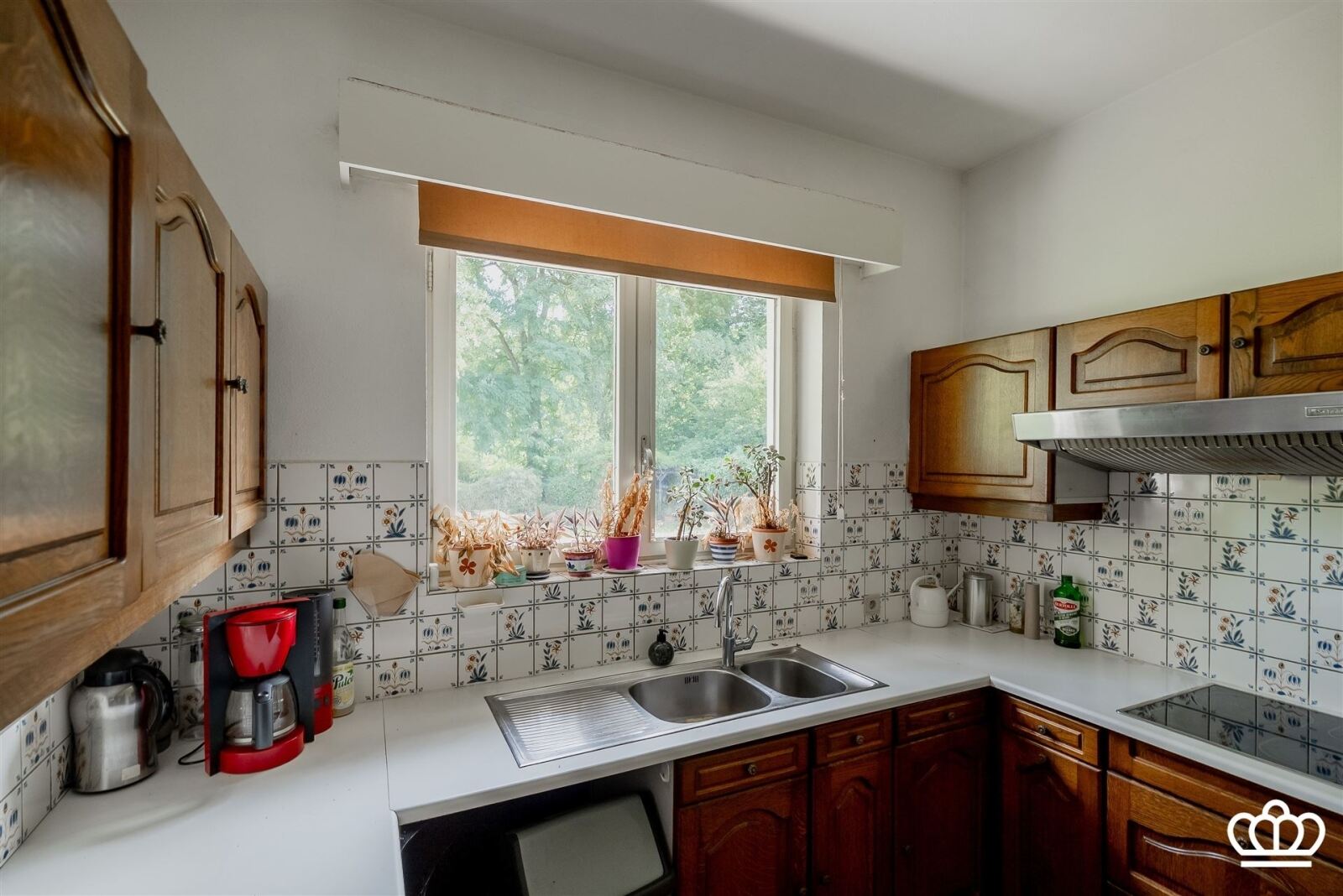 Inkomhal met open traphal, gastentoilet en vestiaire. Ruime, lichte woonkamer met uitzicht op de tuin. De keuken bevindt zich naast de woonkamer, met zicht op de tuin en zijdeur buiten. Vanuit de keuken toegang naar de inpandige garage (voor 1 auto).