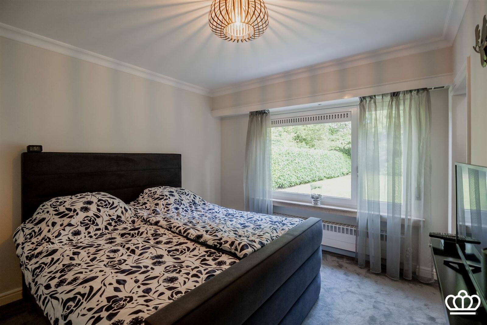 De ruime inkomhal op tegelvloer beschikt over een gastentoilet met handenwasser en een vestiaire. Van hieruit bereikt u de lichtrijke leefruimte op tegelvloer, onderverdeeld in een gezellige zithoek met gashaard en een eetplaats met een mooi zicht op de fraai aangelegde tuin. De landelijke keuken, eveneens op tegelvloer, is uitgerust met moderne inbouwapparatuur: een Siemens oven en microgolfoven, een Whirlpool gasfornuis met dampkap, een Siemens vaatwasser, een koelkast met vriesvak en een dubbele spoelbak. Via een schuifraam heeft u rechtstreeks toegang tot het open terras en de zonnige tuin. De masterbedroom op tapijtvloer beschikt over een ensuite badkamer op tegelvloer, voorzien van een inloopdouche, ligbad, dubbele wastafel, toilet en handdoekradiator. Daarnaast zijn er nog twee slaapkamers op tapijtvloer, waarvan één momenteel is ingericht als dressing en één als bureauruimte. Vanuit één van deze kamers is er toegang tot de tweede badkamer met douche en wastafel. Verder is er een inpandige garage met automatische poort, waar zich ook de technische installaties bevinden.